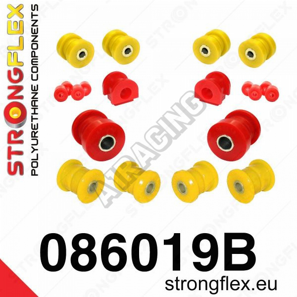 Tvrdší silentbloky dodá vašemu autu lepší kontrolu i jízdní stabilitu hlavně při průjezdech v zatáčkách. Firma StrongFlex vyrábí tyto komponenty z kvalitnějších materiálů než jsou z prvovýroby, dodává 2 tvrdosti a to základní červenou 80 ShA, která je o něco tvrdší než oem provedení a potom žlutou sport o tvrdosti 90 ShA, která se už hodí spíše pro sportovní účely. V galerii fotek je vidět použití jednotlivých silentbloků