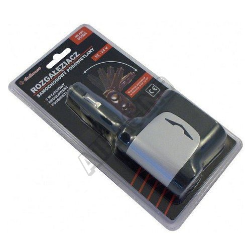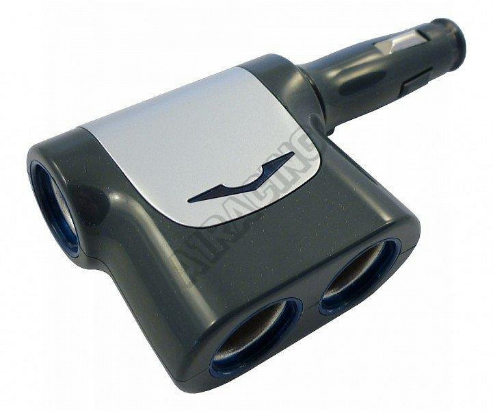 Podsvětlená roztrojka zásuvky automobilového zapalovače 12 V s ohebným kloubem. Umožňuje připojení více spotřebičů k jedné standardní zásuvce zapalovače v automobilu.