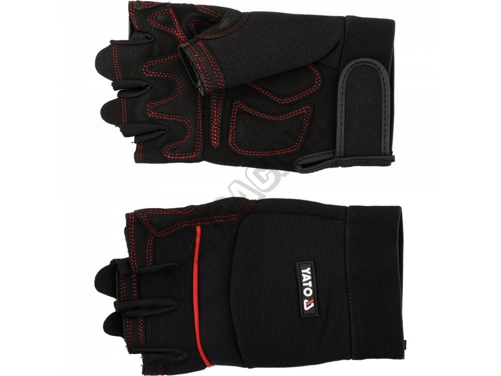 Bezprstové pracovní rukavice, vyrobené ze syntetické kůže a dvouvrstvé tkaniny nylonu se spandexem.