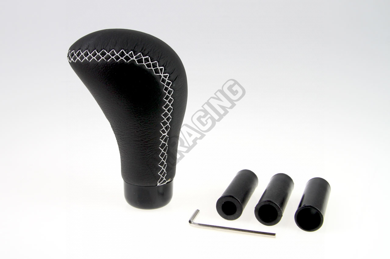 Rukoväť radiacej páky čierna/biele prešívanieVyhotovenie kože.Súčasťou balenia sú plastové redukcie,