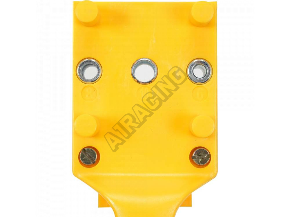 Design šablony umožňuje dělat otvory i na rovině, nejen na okrajích. Vyrobeno z nylonu, přidržovací pouzdra, které jsou zašroubovaná do těla jsou vyrobena z tvrzené oceli.