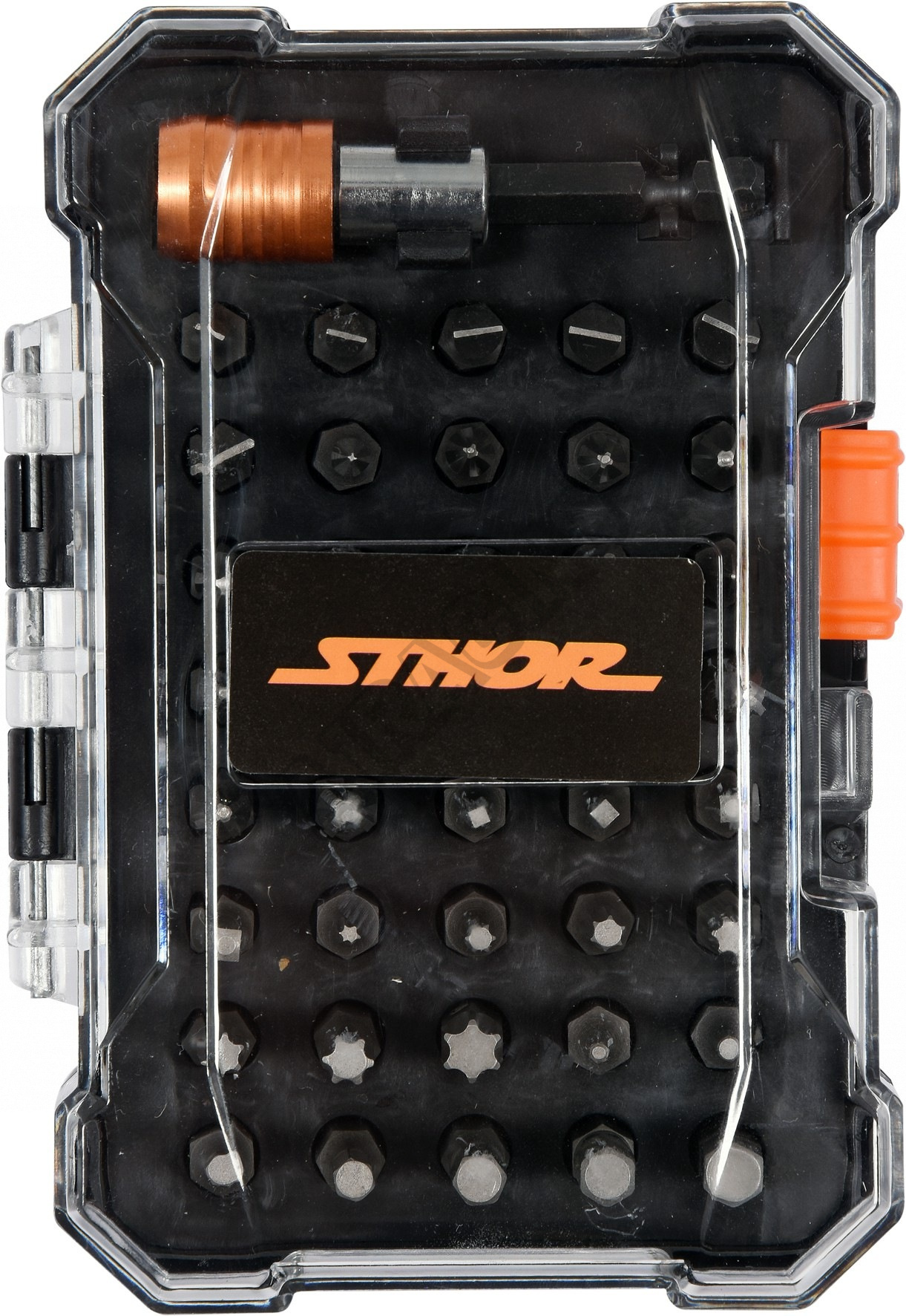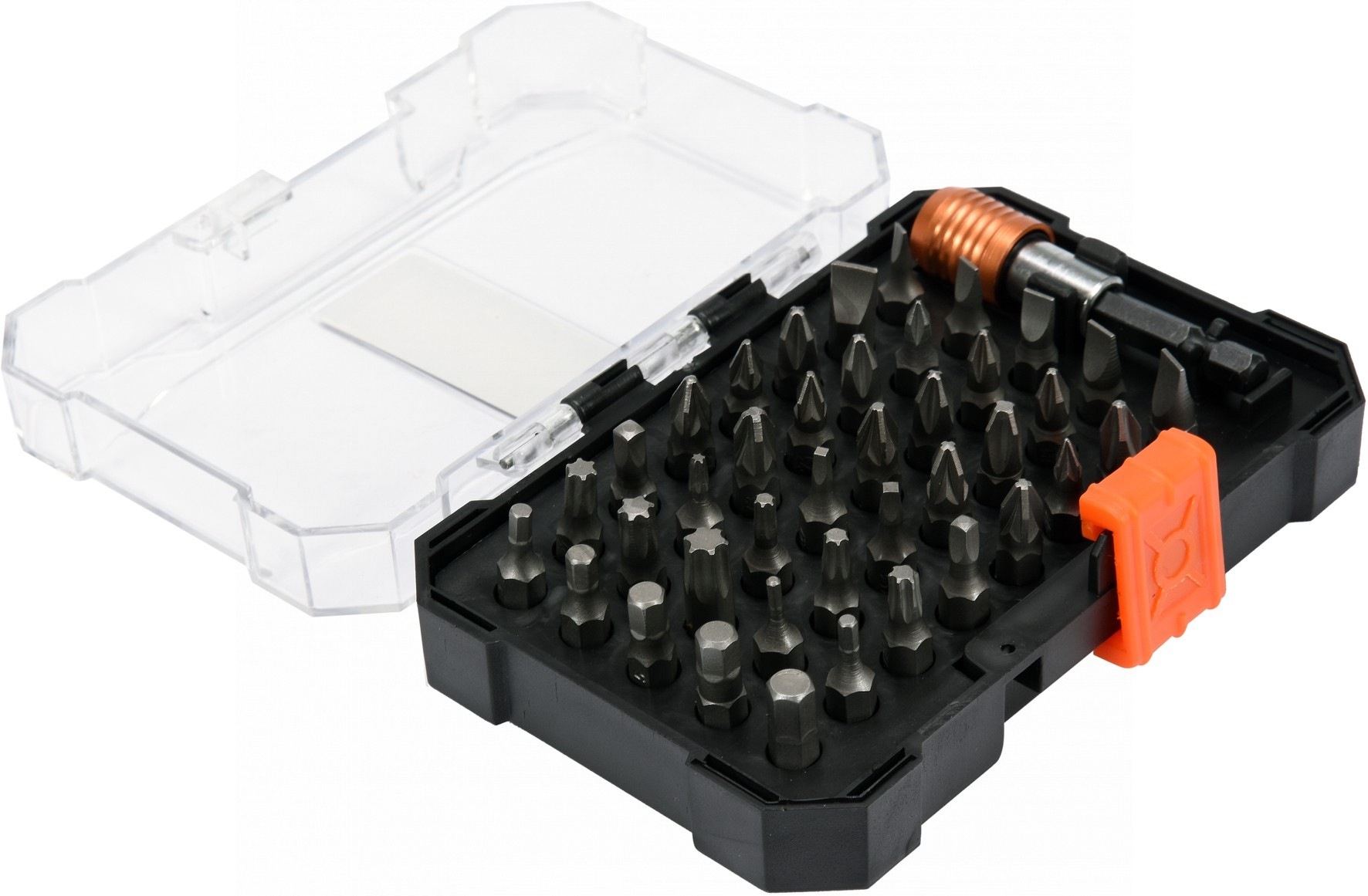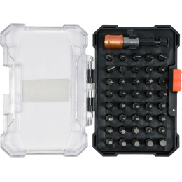 Jednotlivé bity jsou vyrobené z kvalitní CRV oceli. Sada je uložena v přehledném plastovém pouzdře.