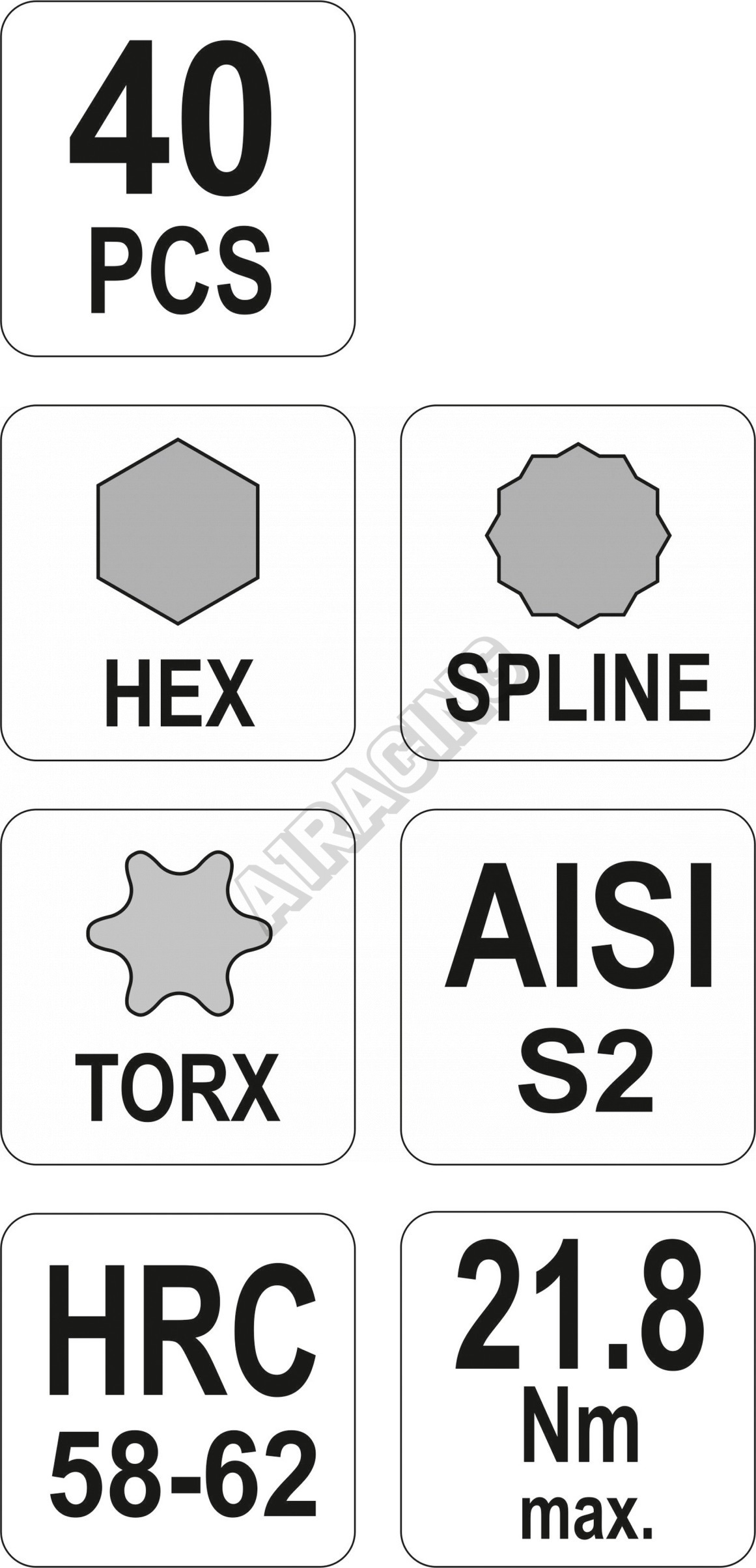 Rozmanitost bitů poskytuje možnost provádět mnoho prací v odborných službách, především v automobilovém průmyslu. V sadě se nachází 40 ks.
