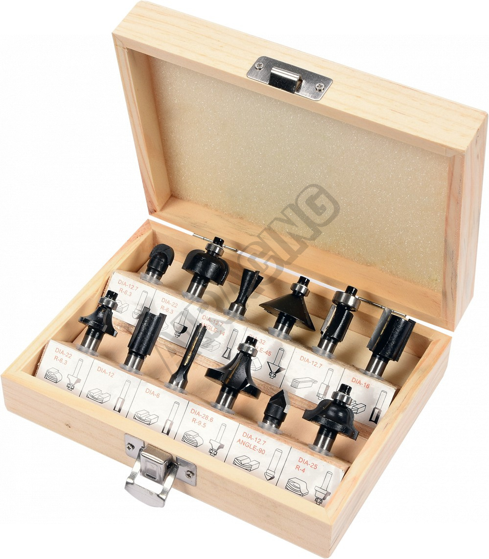 Sada obsahuje 12 nejčastěji používaných frézek pro dekorativní tvarování dřeva při výrobě nábytku a modernizaci interiérů.