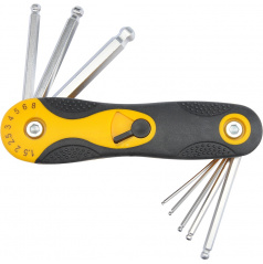 Sada šestihranných klíčů s kulovou hlavou. Vyrobeno z chrom-vanadiové CrV oceli. Saténový povrch klíčů.
