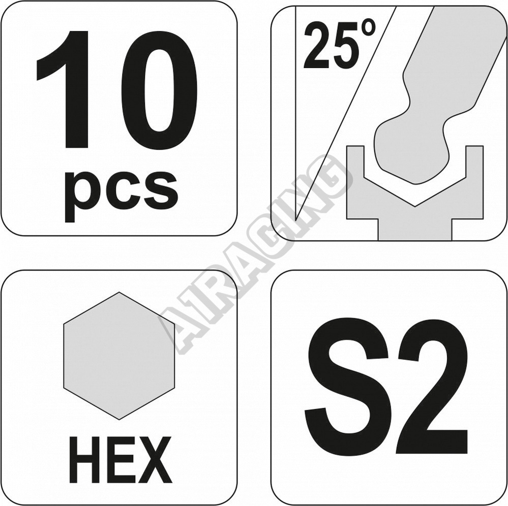Jednotlivé klíče jsou zhotovené z kvalitní oceli AISI S2, zajišťující dlouhou životnost.