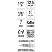 Sada se skládá ze 7 ks precizních klíčů, zhotovených z Cr-Mo slitiny oceli SCM-440 se zakončení 1/2" a 3/8".