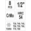 Sada nástavců 1/2" rázové 8 ks T30-T80 torx CrMo