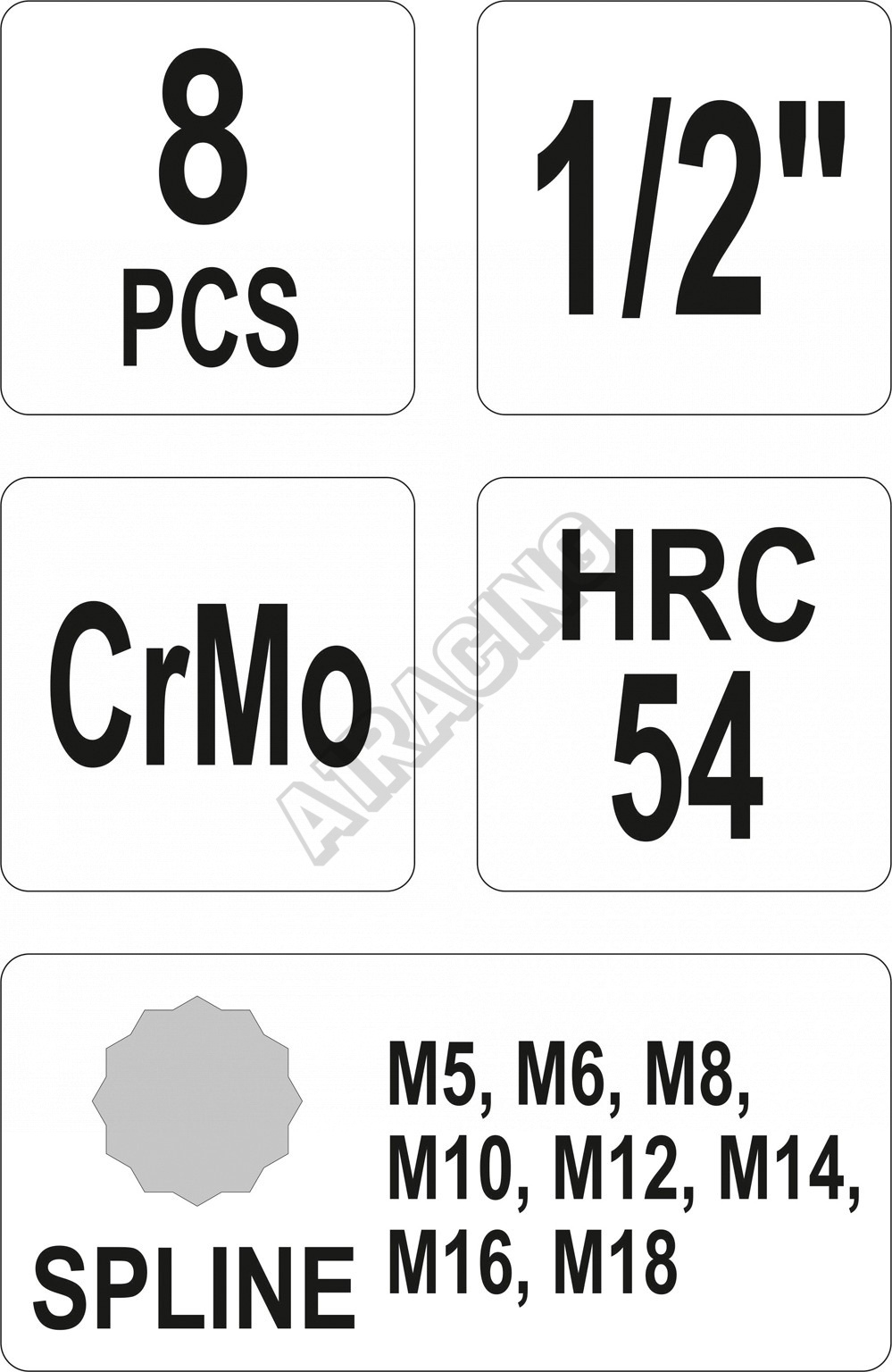Sada nástrčných klíčů 1/2" Spline, 8ks