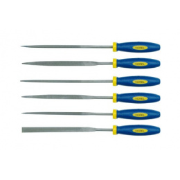 Sada 6ti jehlových pilníků s rukojeťí.Provedení plochý, kulatý, čtvercový, trojúhelník, půlkruh, plo