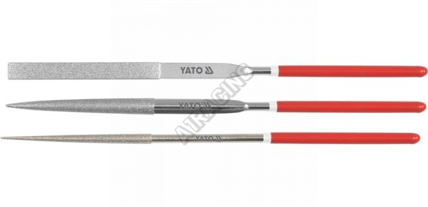 Sada 3 ks diamantových pilníků se zrnitostí 150. Celková délka jednotlivých pilníků 140 mm z nichž
