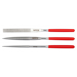 Sada 3 ks diamantových pilníků se zrnitostí 150. Celková délka jednotlivých pilníků 180 mm z nichž