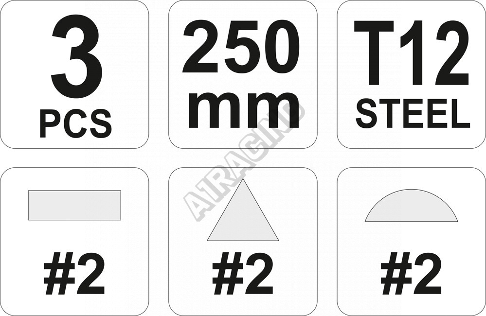 Tato sada pilníků má křížový sek typu 2. Tvar a hrubost pilníku závisí na typu práce a požadovaném výsledku.