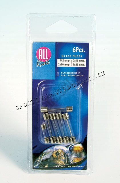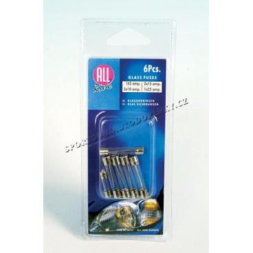 Sada poistiek - sklenené, 6ks 1x2A, 1x10A, 1x15A, 1x5A, 1x10A, 1x25.