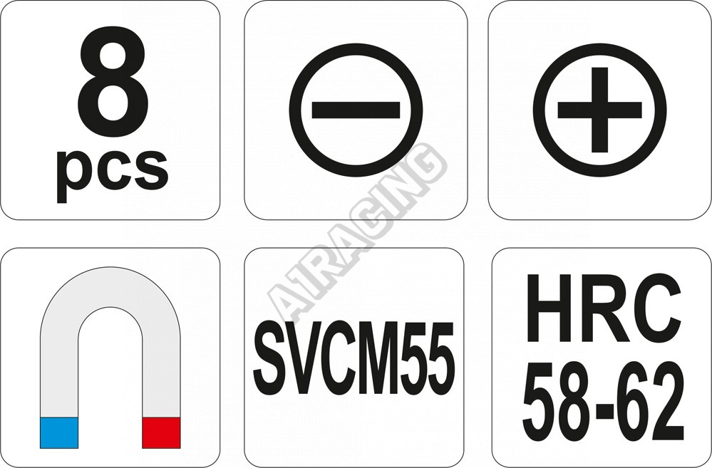 Hroty šroubováků byly pískovány a zmagnetizovány, což umožňuje bezpečné uchopení hlavy šroubu.