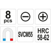 Sada 8 profesionálních magnetických šroubováků, vyrobených z vysoce kvalitní chrom-molybdenové oceli, která zaručuje dlouhou životnost a vysokou odolnost proti deformaci.