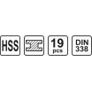 Sada vrtáků na kov 19 ks HSS 135°