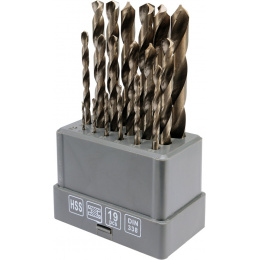 Sada 19 ks vrtáku z rychlořezné oceli s vrcholovým úhlem 135°