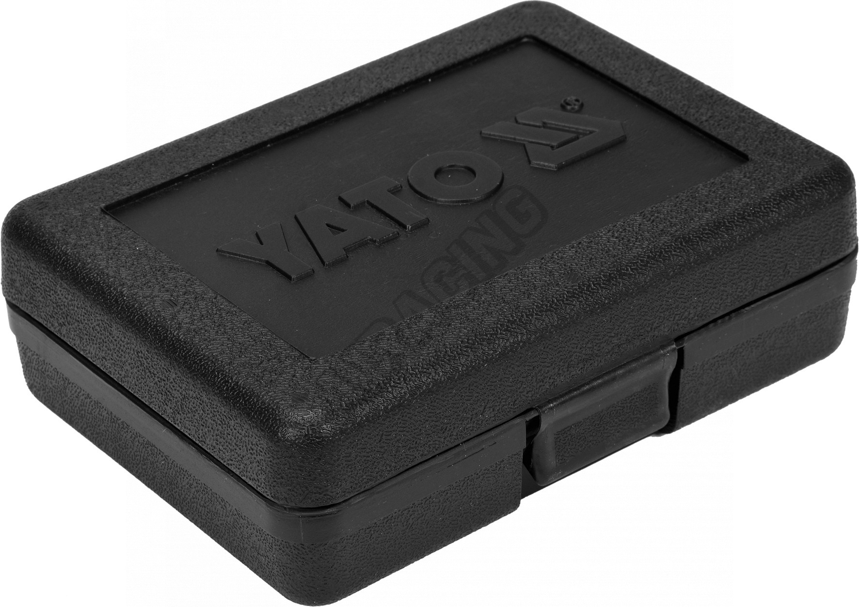 Sada je zhotovena z kvalitní CrMo oceli, s tvrdostí 52-55 HRC a je přehledně uspořádána v plastovém kufříku.