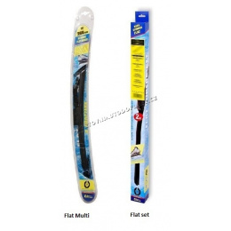 Stěrače FLAT SET (sada 2 ks na celé auto). Vysoce kvalitní pružný člen plochého stěrače zajišťuje stejnoměrný tlak grafitového břitu v celé jeho délce, což zamezuje rozmazávání nečistot a vytváření pruhů.