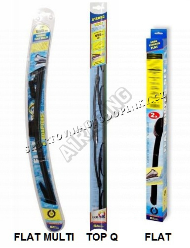 Stěrače FLAT SET (sada 2 ks na celé auto). Vysoce kvalitní pružný člen plochého stěrače zajišťuje stejnoměrný tlak grafitového břitu v celé jeho délce, což zamezuje rozmazávání nečistot a vytváření pruhů.