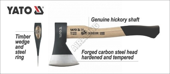 Hlava a jej ostrie bolo precízne vykované z kvalitnej uhlíkovej ocele, ktorá bola po spracovaní kalená a temperovaná pre ešte lepšie vlastnosti. Proti vykláňaniu je opatrená dreveným klinom spolu s oceľovým krúžkom.