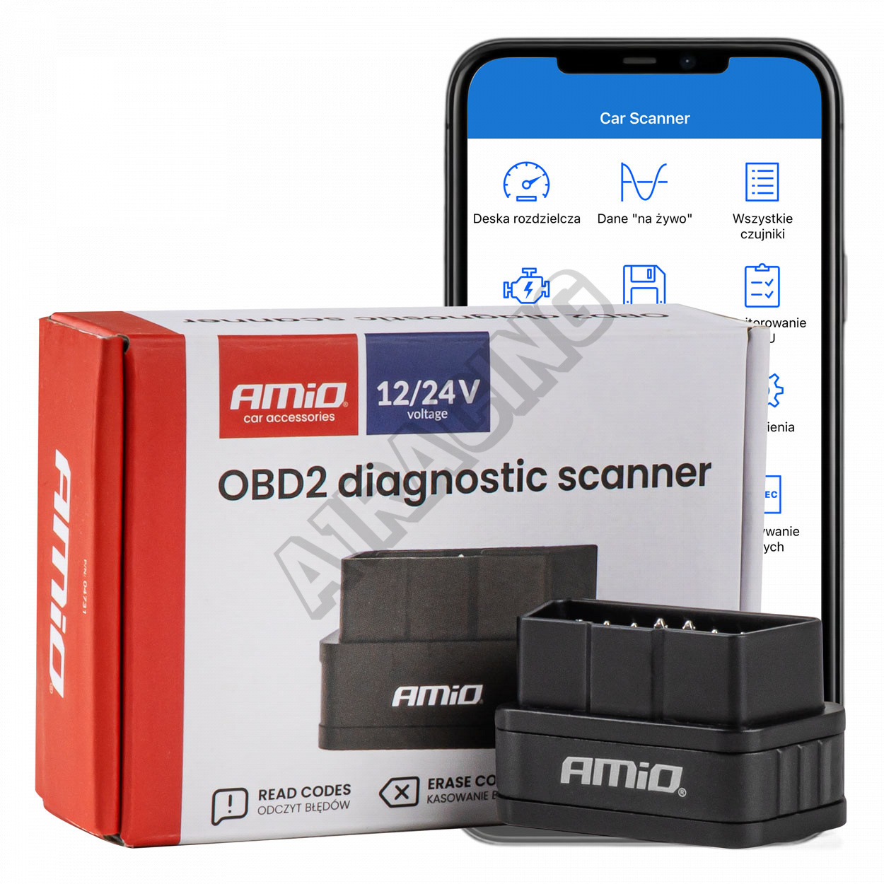 Skenovací tester diagnostického rozhrania AMiO ELM327 OBD2 BT PIC25K80 DC24K AMIO-04731