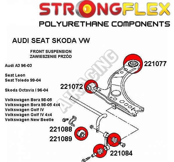 0recenzia produktuŠkoda Octavia I 1996-04 Strongflex zostava silentblokov len pre prednú nápravu 12 ks