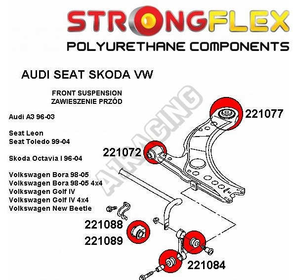Škoda Octavia I StrongFlex Sport sestava silentbloků jen pro přední nápravu 10 ks obsahuje: