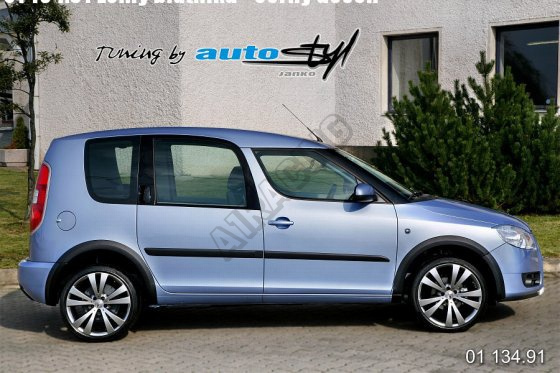 Lemy blatníků pro Škoda Roomster v černém desénu zvýrazní boční linie Vašeho vozu. Desetidílná sada se vyznačuje velmi jednoduchou montáží pomocí oboustranné samolepky. Tento tuning zvládne i naprostý laik.