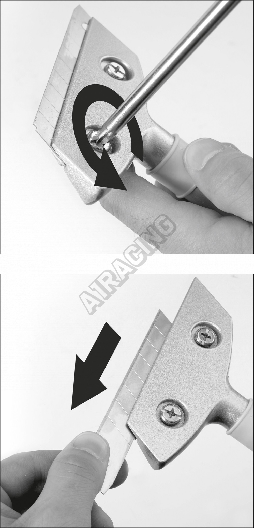 Škrabka s vymeniteľnou čepeľou, rozmery 18 x 100 mm, vhodná pre typické lomené čepele noža namontované na držiaku z hliníka.