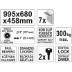 Skříňka o rozměrech 995 x 680 x 458 mm je zhotovena z oceli, její nosnost činí 300 kg.