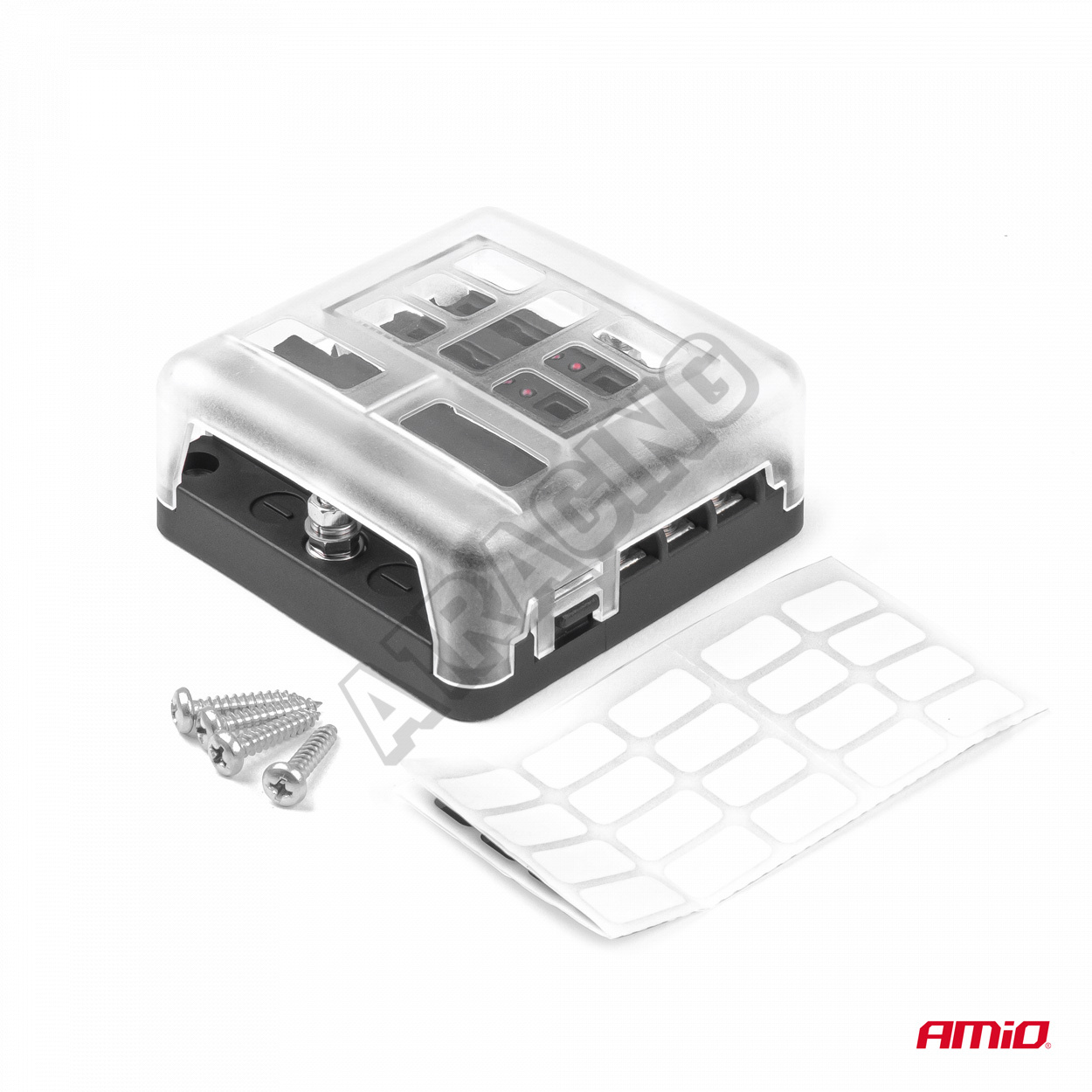 Skrinka s poistkami s LED zápornou lištou 6 zásuviek AMIO-03038