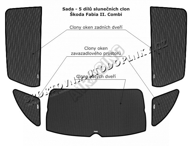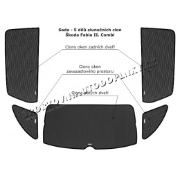 Slnečné clony sada - zadné dvere, zadné okná, piate dvere, Škoda Fabia II Combi