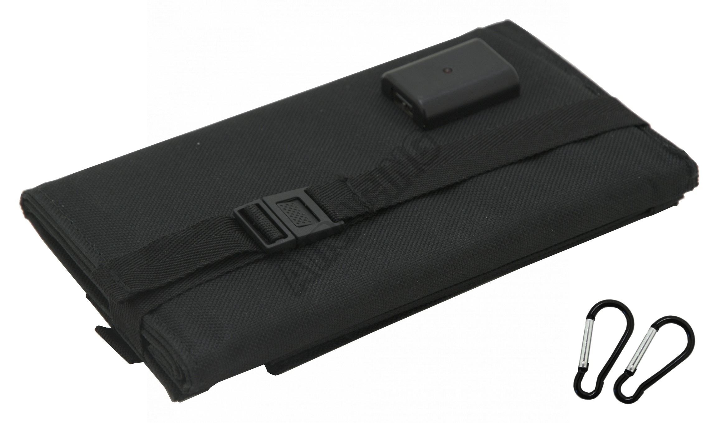 Komplet panelů stačí rozložit a umístit na slunce, případně pomocí přiloených karabinek zavěsit např. na batoh a pomocí USB kabeláže (není součástí balení) propojit nabíjecí modul panelu s nabíjeným zařízením.
