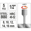 Sada obsahuje 5 ks přípravků na závrtné šrouby průměrů 8; 10; 12; 14; 16 mm.