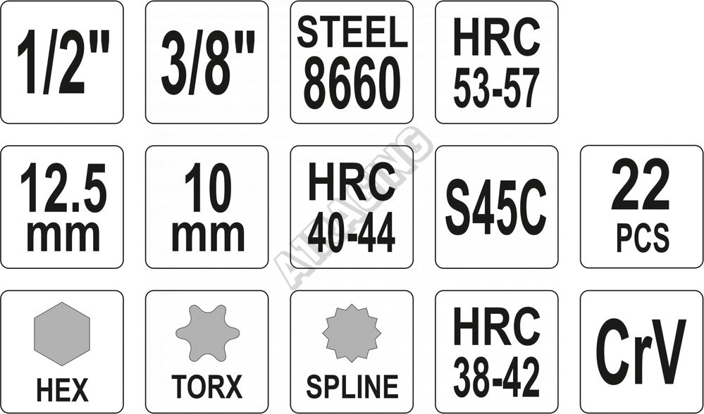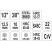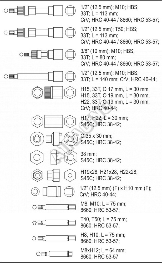 | tvrdosti HRC | 38-42; 40-44; 53-57 |