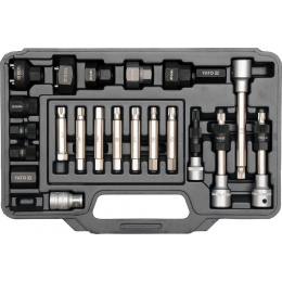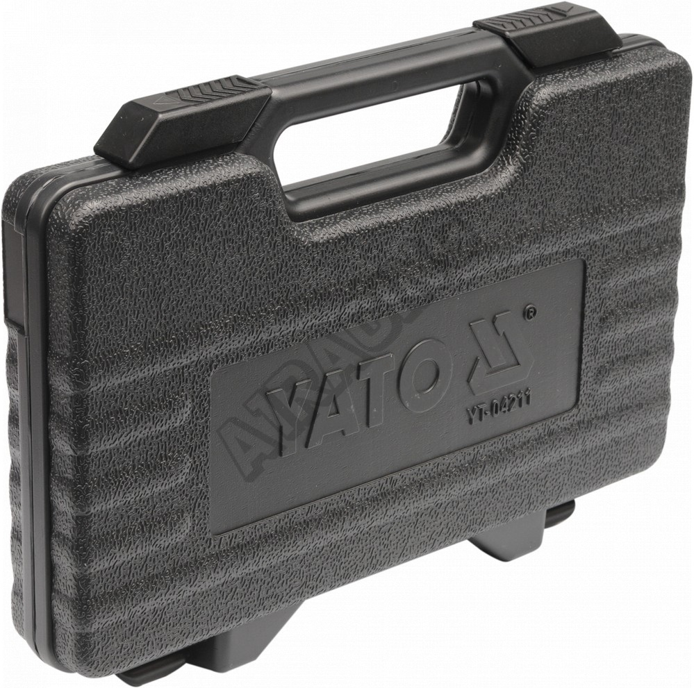 Sada je přehledně uložena v kufříku a jednotlivé nástavce jsou velikosti 1/2" a 3/8".
