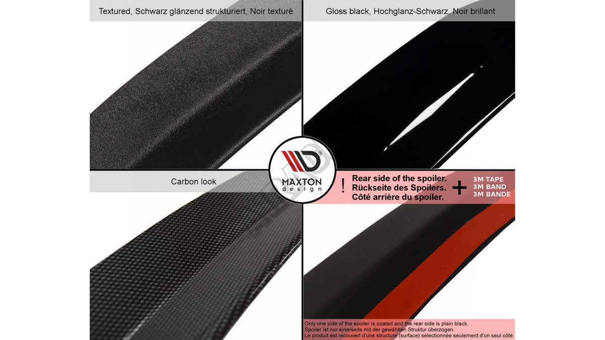 Maxton Design jest dynamicznie rozwijającym się przedsiębiorstwem, które specjalizuje się w produkcji świetnej jakości części tuningu optycznego. Firma istnieje na rynku od wielu lat, a produkty pochodzące z jej oferty znane są klientom w kilkudziesięciu krajach w Europie. Asortyment marki pełen jest ciekawych spoilerów, splitterów, zderzaków, dokładek progów czy dyfuzorów. Części proponowane przez markę dopasować można do samochodów kilkudziesięciu marek. Dzięki tak bogatej ofercie, Maxton Design należy do grona najbardziej konkurencyjnych firm w branży. W sklepie marki znajdziesz wiele godnych uwagi produktów przeznaczonych do montażu w BMW 4 F36 Gran Coupé. Jednym z nich jest spoiler drzwi bagażnika.