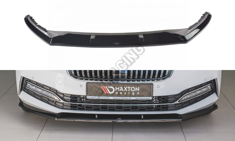 Spoiler pod predný nárazník Ver.1 pre Škoda Superb Mk3 FL Facelift, Maxton Design (čierny lesklý plast ABS)