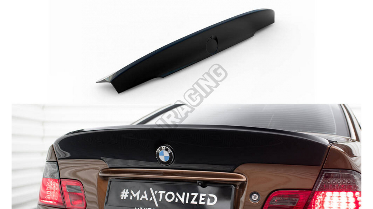 Zadný spojler pre BMW 3 E46 Coupe M3 CSL Look je prvok, ktorého montáž osvieži vzhľad vášho vozidla a zlepší jeho aerodynamiku. Nástavec sa vyznačuje estetickým dizajnom, vďaka čomu obohatí vzhľad vášho automobilu. Vďaka tomuto spojleru bude vzduch obtekajúci karosériu spôsobovať väčší tlak na zadnú nápravu, čo povedie k zlepšeniu priľnavosti vozidla. Nákup tuningových dielov od Maxton Design je investíciou do najlepších produktov na trhu, ktoré sa vyznačujú vysokou kvalitou spracovania a moderným dizajnom. Ak práve takéto produkty hľadáš, ponuka Maxton Design bezpochyby uspokojí tvoje chute.