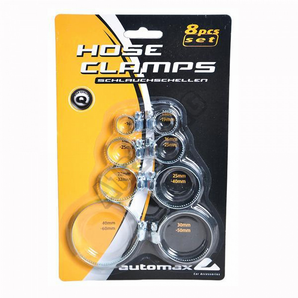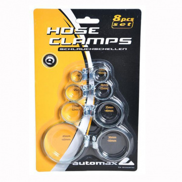 Hadicové spony - sada 8ks, 1x-6 -16mm, 1x13-19mm, 2x16-25mm, 1x 22-32mm, 1x 25-40mm, 1x 40-60mm, 1x 30-50mm.