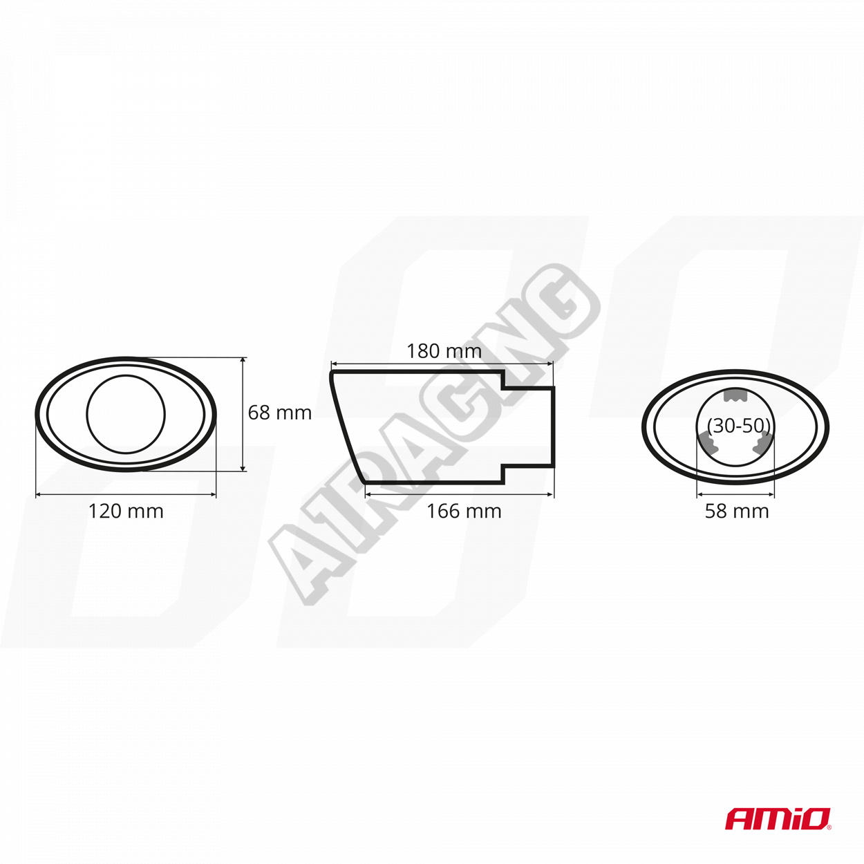 Efektné titánové prevedenie s dvojitým plášťom koncovky proti prehriatiu hornej vrstvy, dĺžka 180 mm, vonkajší priemer koncovky 120x68 mm, priemer pre uchytenie je 30-54 mm na spony. Ak by ste chceli koncovku navariť, tak môže byť použitá až pre priemer výfukovej trubky 60 mm.