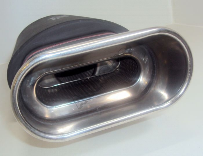 Ocelový sportovní výfuk průchozí konstrukce s nerez oválnou koncovkou, která má navíc vlastní tlumící vložku s perforací, tak že koncovka není tak žhavá jako běžná levná koncovka bez perforace, k tomuto výfuku zdarma dodáváme nerez sponu pro uchycení výfuku.