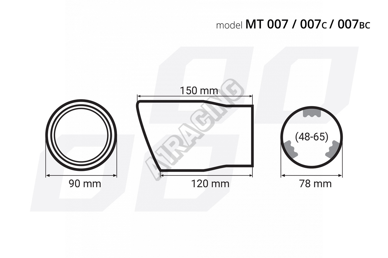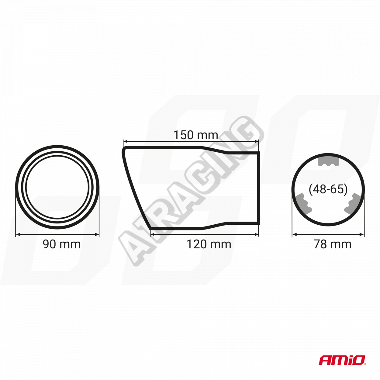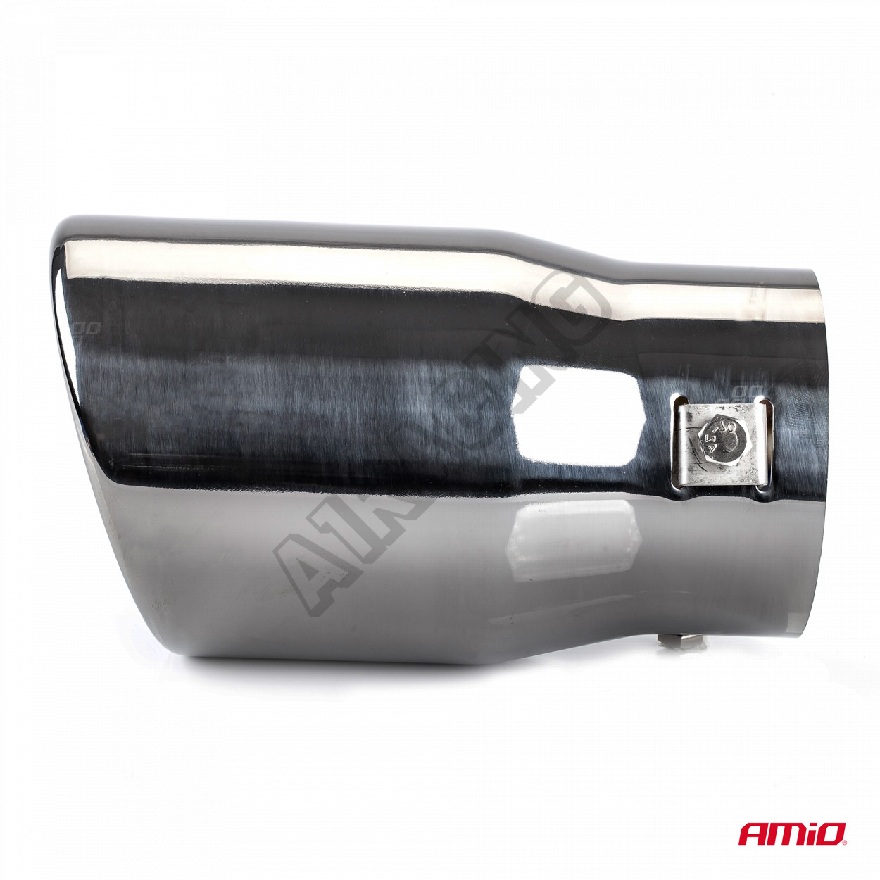 Efektné čierne prevedenie s perforáciou vo vnútri koncovky, dĺžka 130 mm, vonkajší priemer koncovky 90 mm - mierne šikmá, priemer pre uchytenie 43-62 mm na spony, ak by ste chceli koncovku navariť, tak môže byť použitá až pre priemer výfukovej rúry 63 mm,