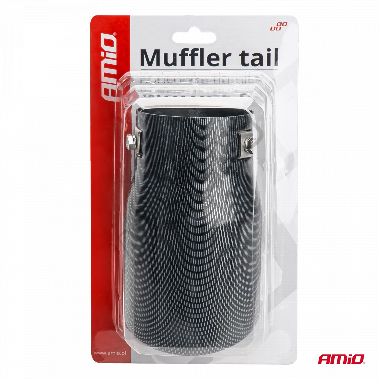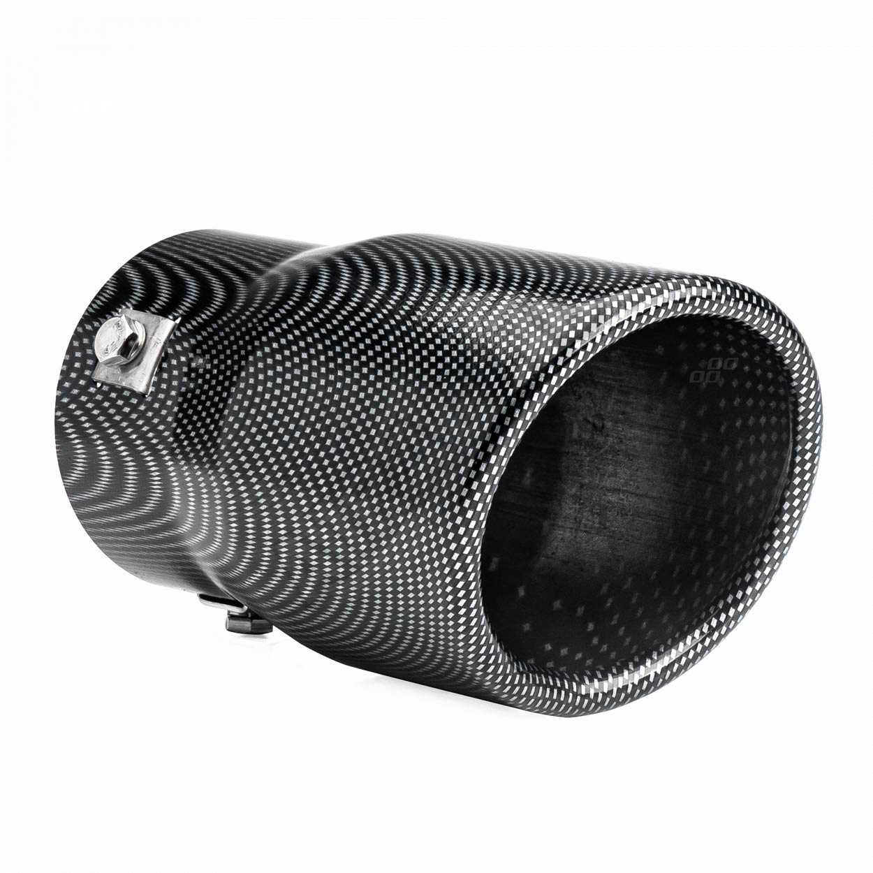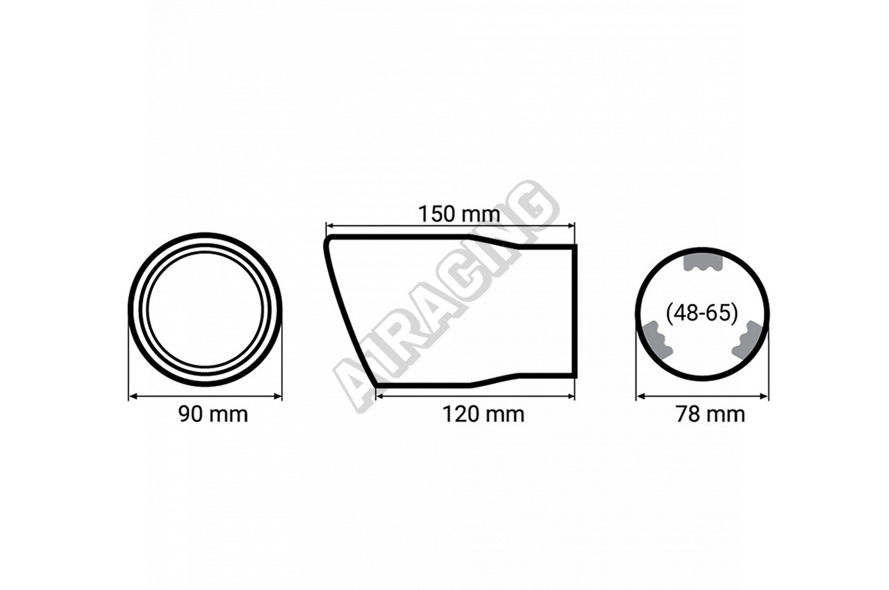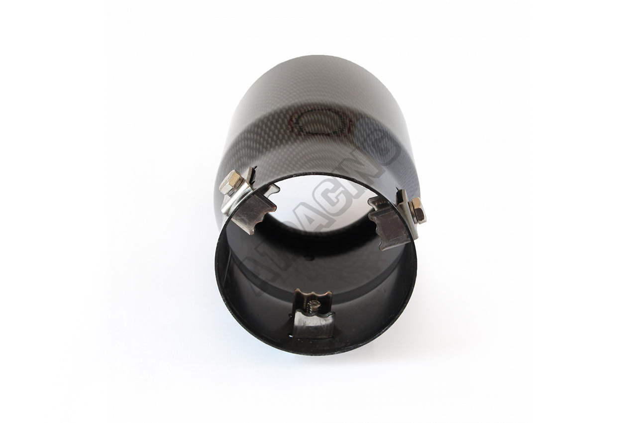 Efektná karbónová fólia prevedenie s dvojitým plášťom koncovky proti prehriatiu hornej vrstvy, dĺžka 150 mm, vonkajší priemer koncovky 90 mm, priemer pre uchytenie je 48-65 mm na spony. Ak by ste chceli koncovku navariť, tak môže byť použitá až pre priemer výfukovej trubky 78 mm.
