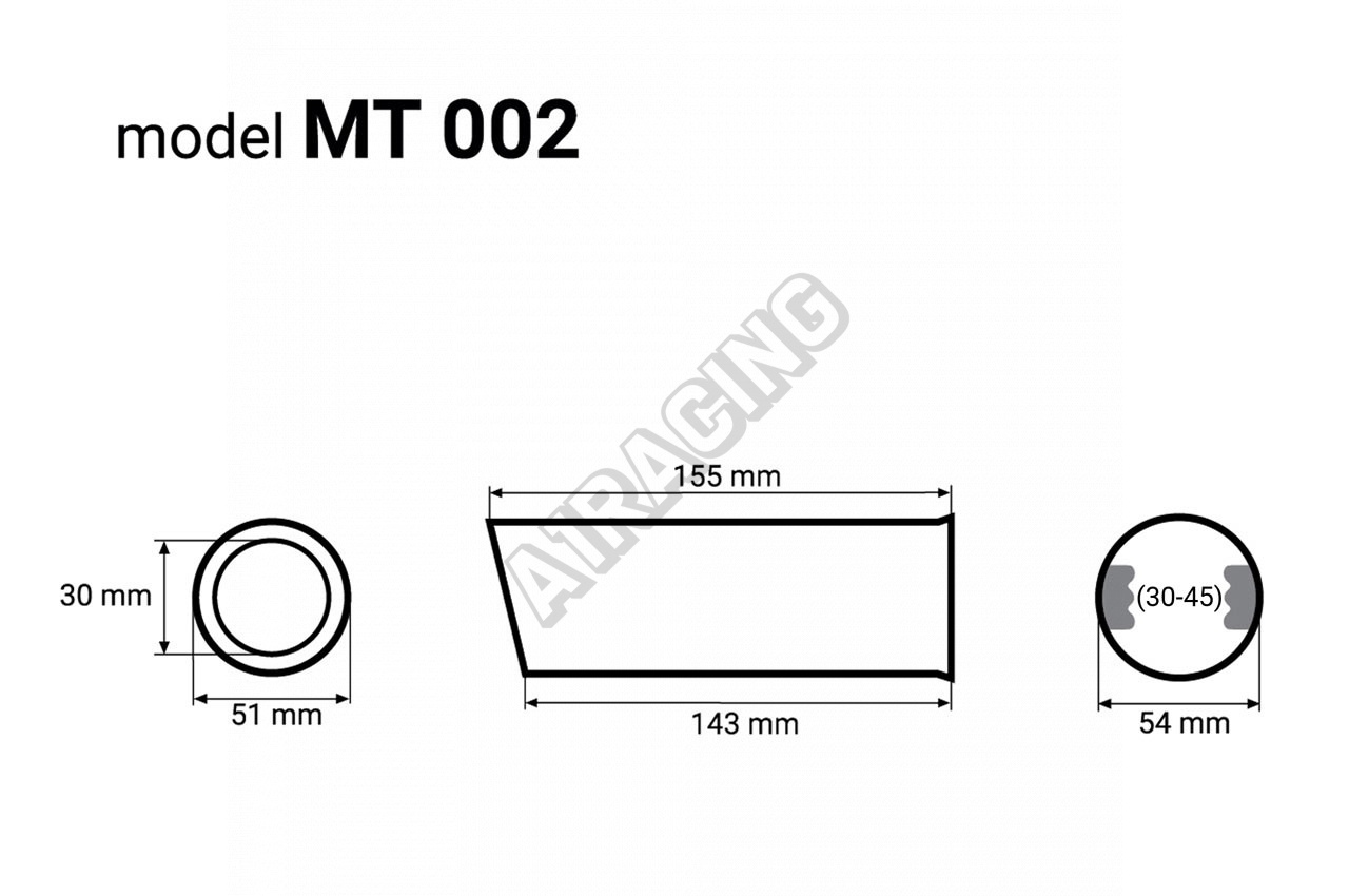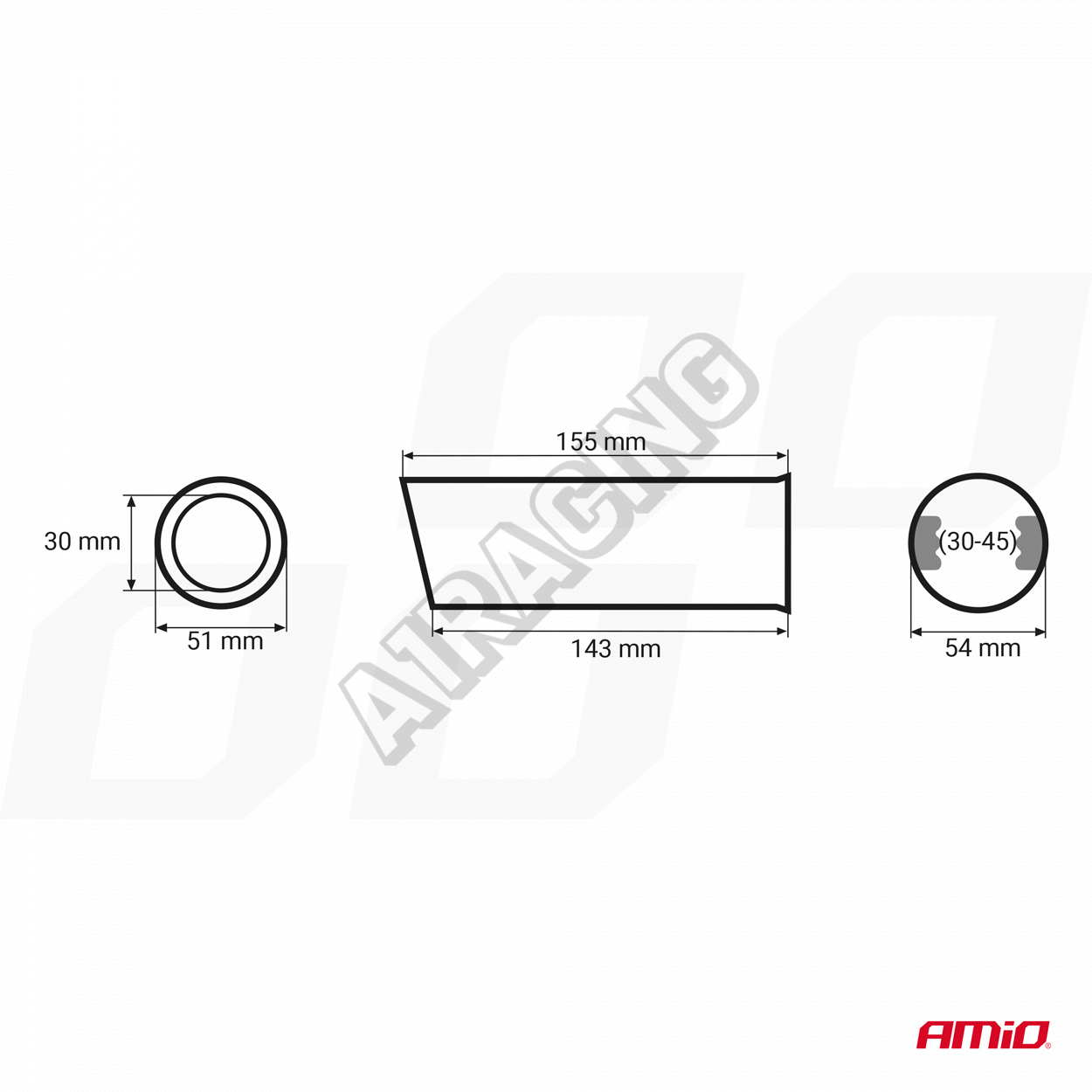 Rozmery: dĺžka 155 mm, priemer koncovky 51 mm, priemer pre nasadenie 30-45 mm