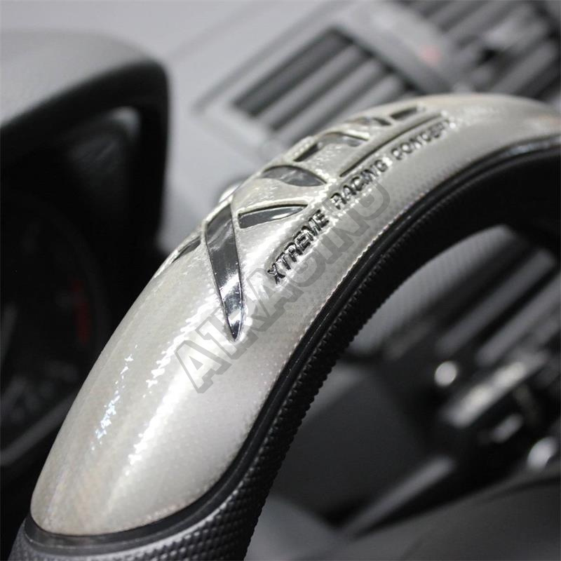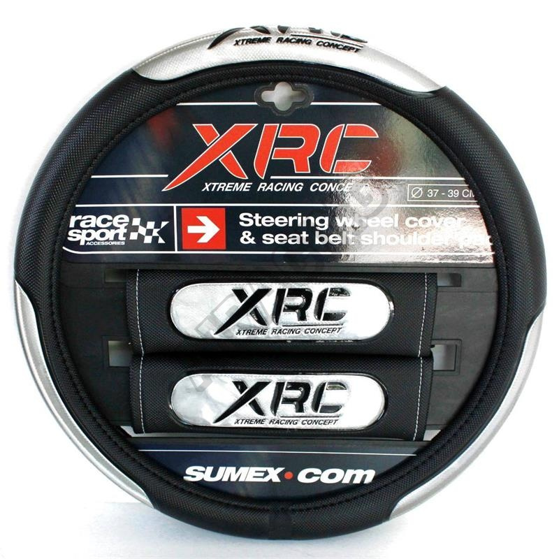 Športový poťah volantu + návleky pásov Race Sport XRC Čierny poťah volantu so strieborným polkruhový