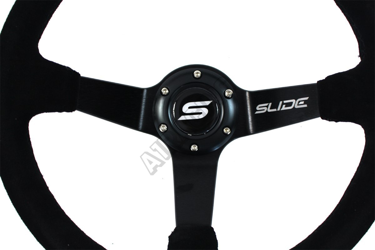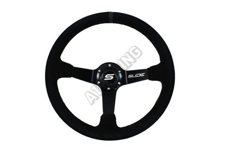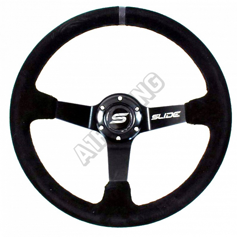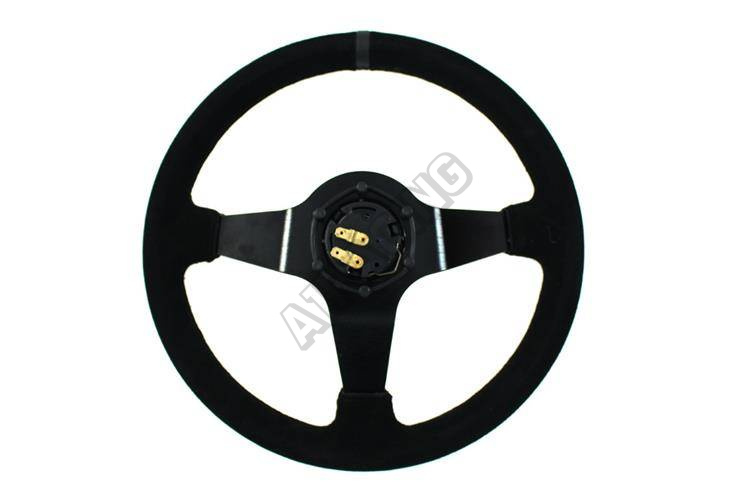 Kvalitná športový volant WRC v športovom semišu ako majú pretekárske autá, určené pre štandardnú 6 dierovú Nabu s priemerom 70 mm, stredná časť volantu o proti krajnej je utopená o 70 mm.