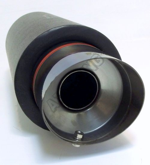 dĺžka 42 cm, priemer koncovky 10 cm, priemer tela 14cm, priemer na navarenie 5,8 cm